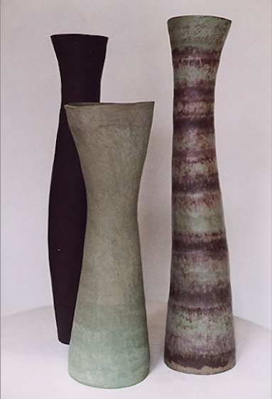 Elle les nomme « pierres de jour et de nuit, pierres de silence », des passages et des souvenirs, avec des effets d’oxydes et des feux de cuisson,